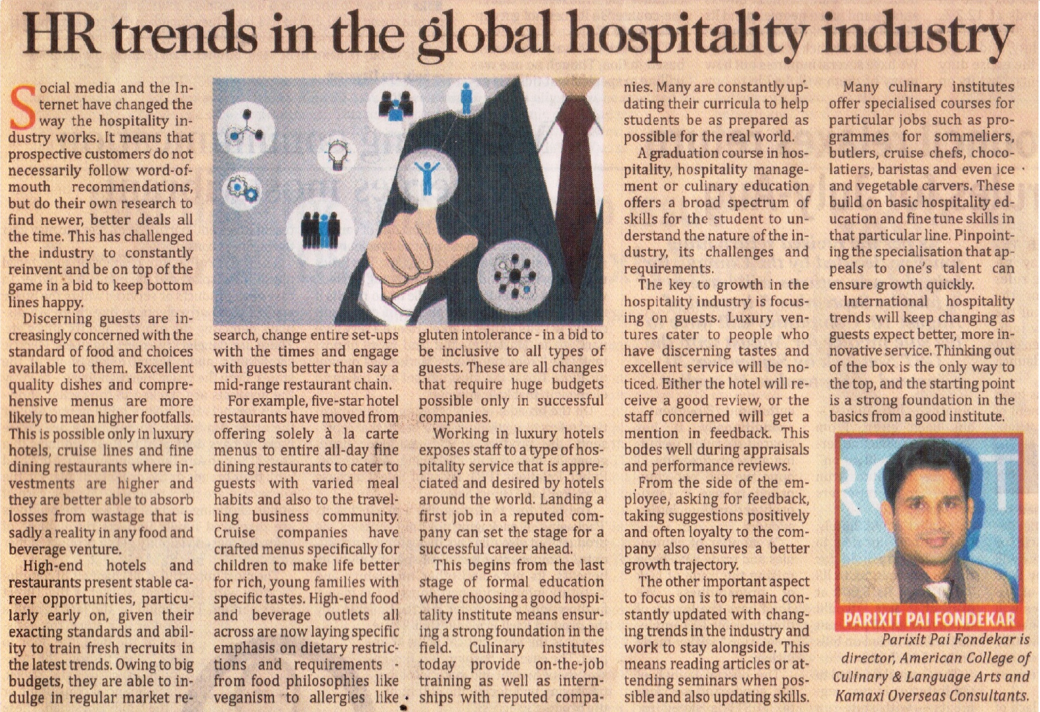 HR Trends in the Global Hospitality Industry HR Trends in the Global Hospitality Industry the Above coverage appeared on 19-06-17 of Herald. The article can be read here.